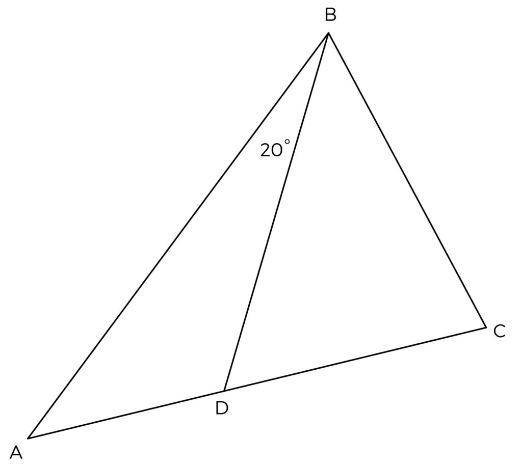 In the figure above, point D is on AC. What is the degree measure of ∠BAC?